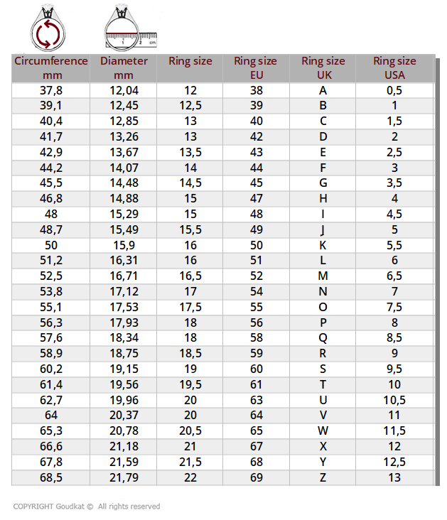 For example: Size 18 corresponds with a diameter of 18 mm.